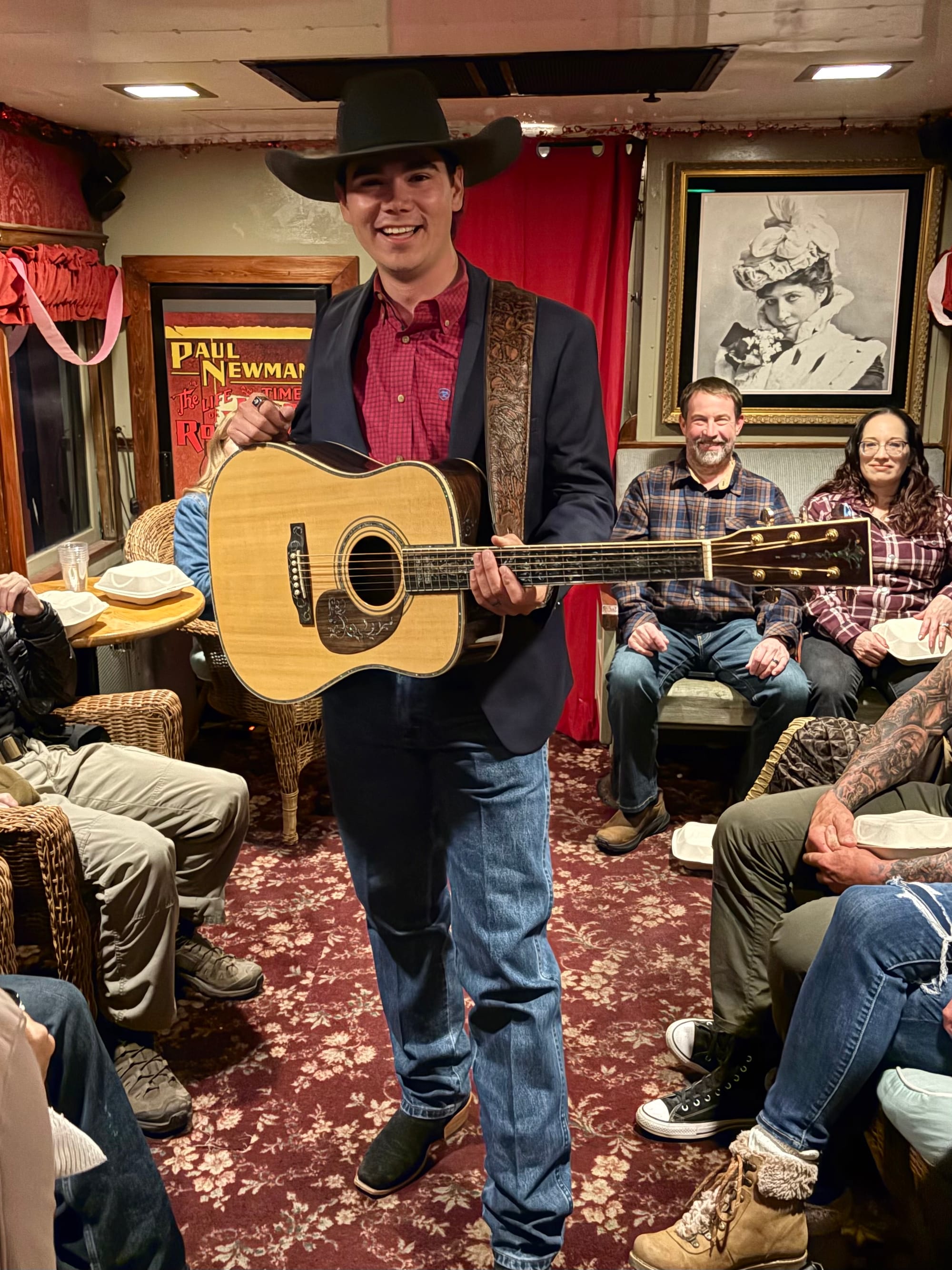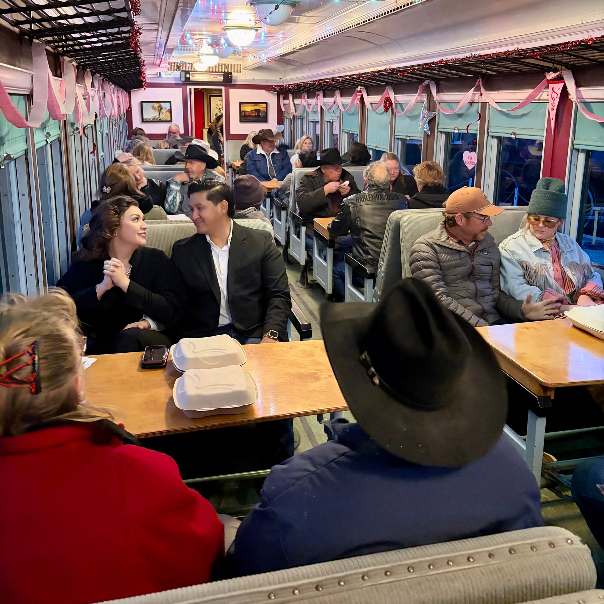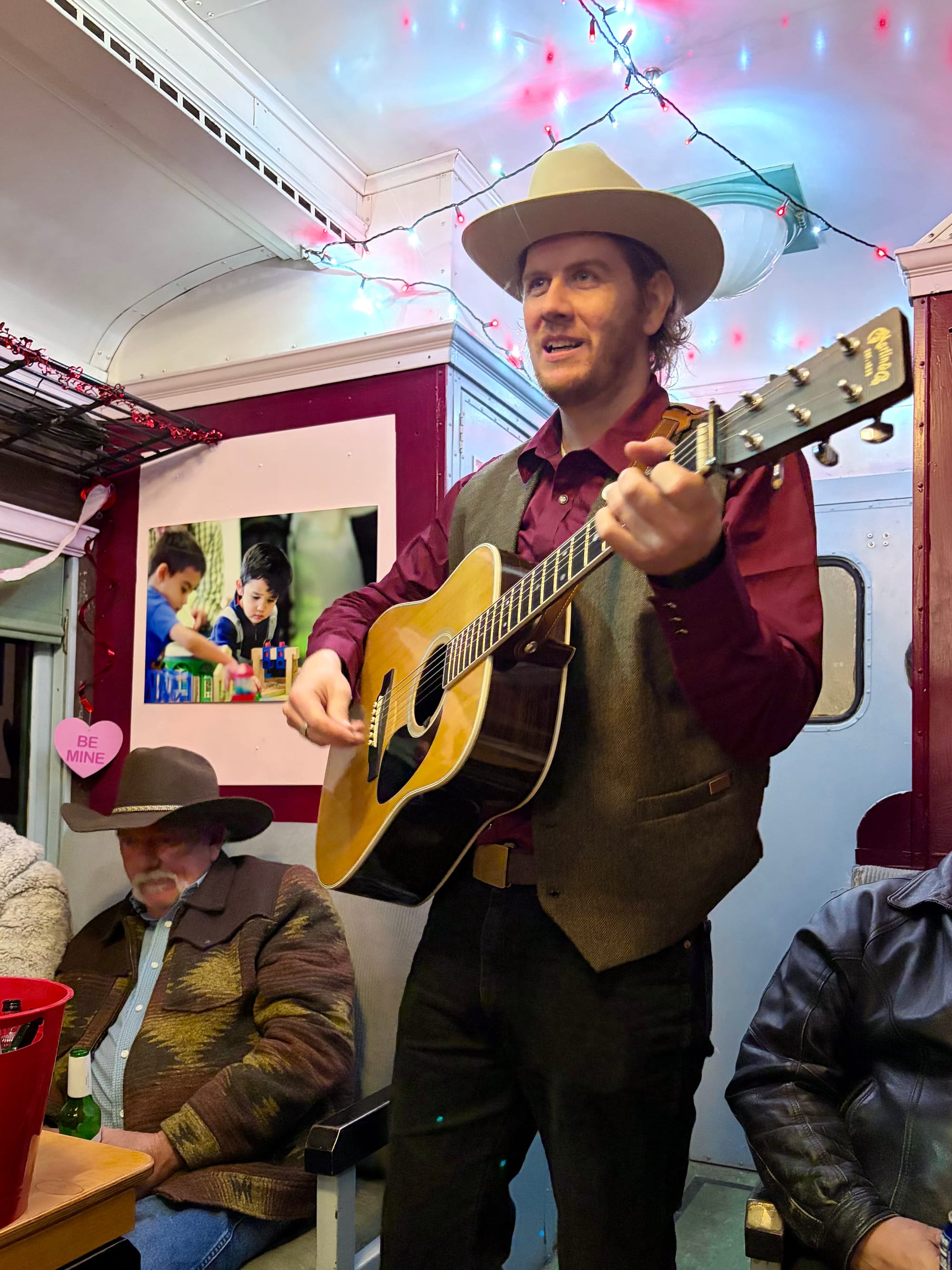 Virginia City packed its Valentine’s Day weekend calendar with something for everyone. The winter air carried that crisp Comstock chill, but it didn’t slow the warm hearts around town. Visitors happily bundled up to enjoy a lively saloon crawl, tempting bake sales, toe-tapping live music, festive fundraisers, and special V&T Railroad event trains. Onboard the evening music train, Carson Chandler and Christian McNamara kept spirits high with a mix of new and classic country-western tunes while passengers sipped cold beverages and indulged in chocolate-covered strawberries. Love was definitely in the mountain air.