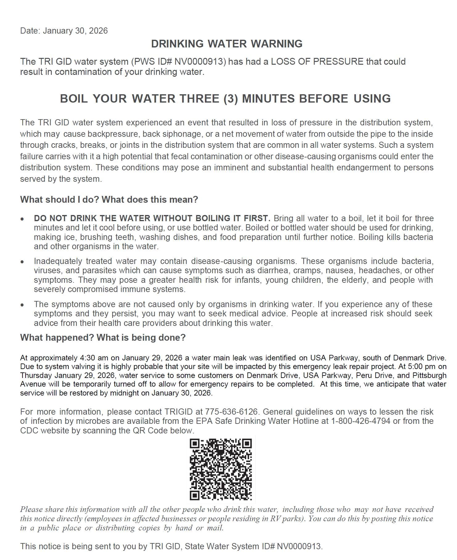Please continue to refer to the posted notice for full details and safety instructions. Questions can be directed to the TRI General Improvement District at 775-636-6126.