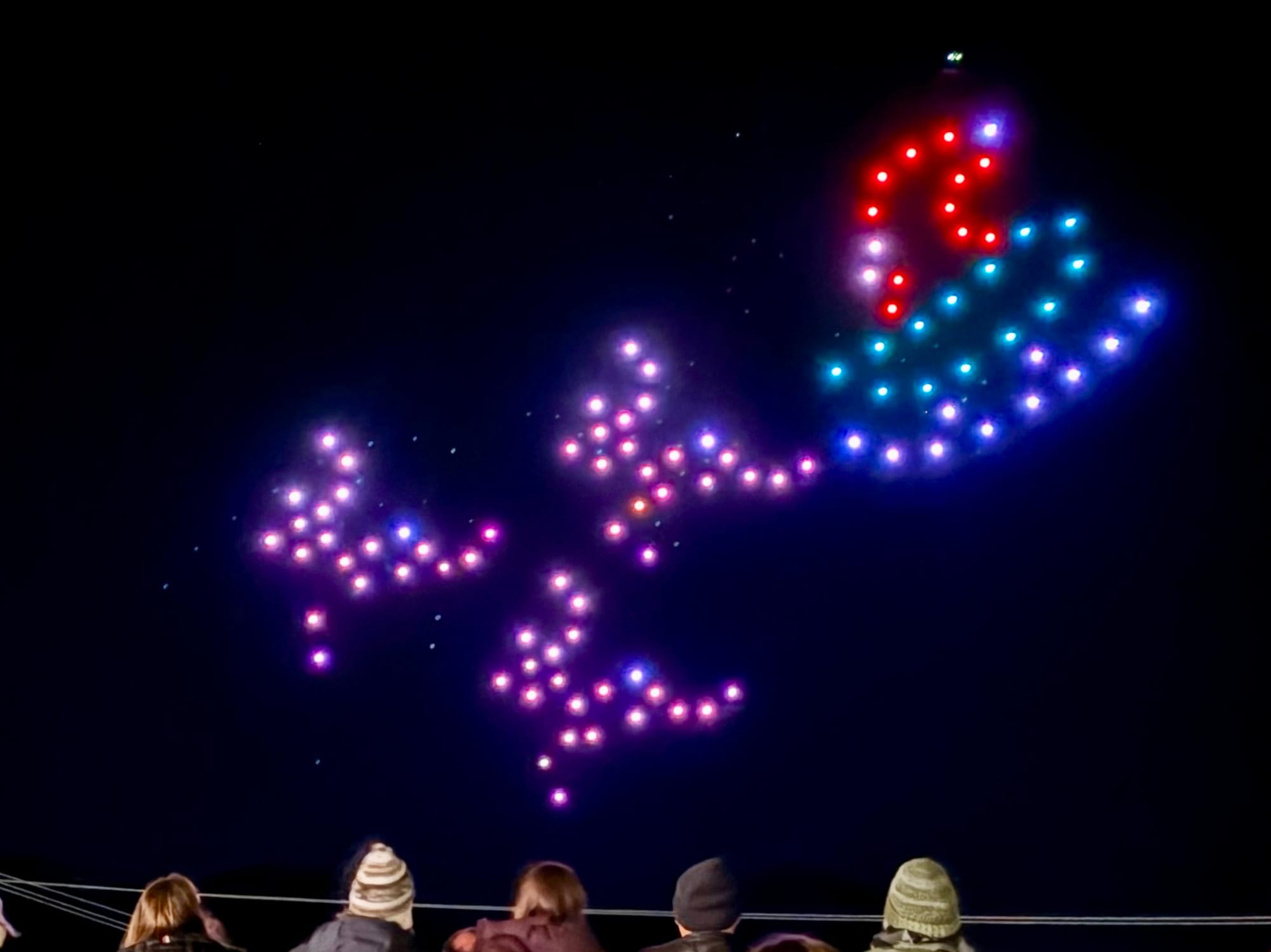 “It’s Santa, he’s waving! Hi, Santa!” kids called out as they looked up at the Christmas lights show in the sky. Half of the fun was the anticipation of what the drones would display next as they transitioned, making it an interactive experience for families.