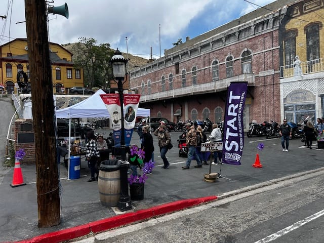 Cheryl Curtis, owner of Virginia City Motorcycle Company, organized an Alzheimer's motorcycle poker ride fundraiser this past Saturday that ended in Virginia City. Although the event ended with snow on the first day of summer, Cheryl was excited about the turnout.