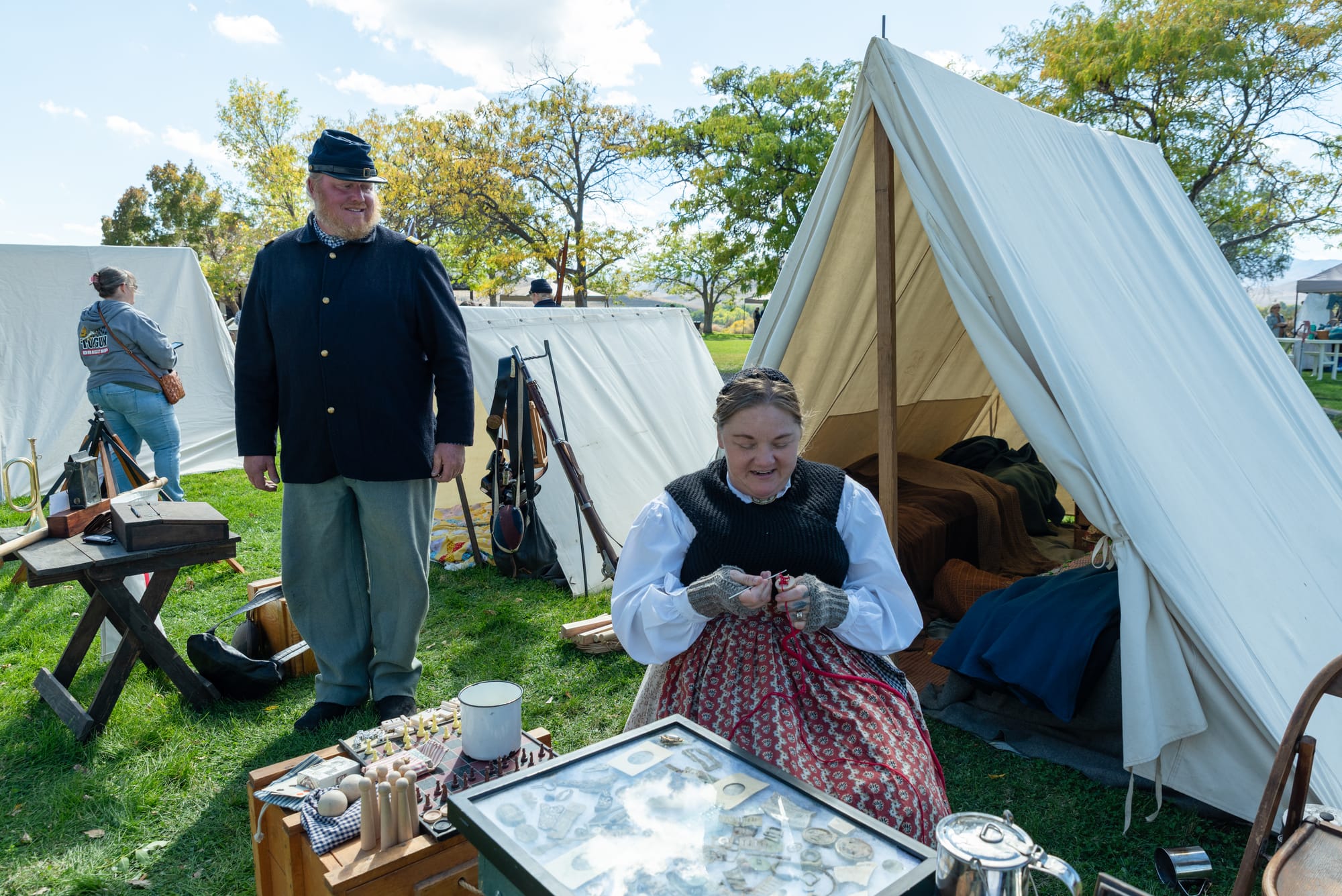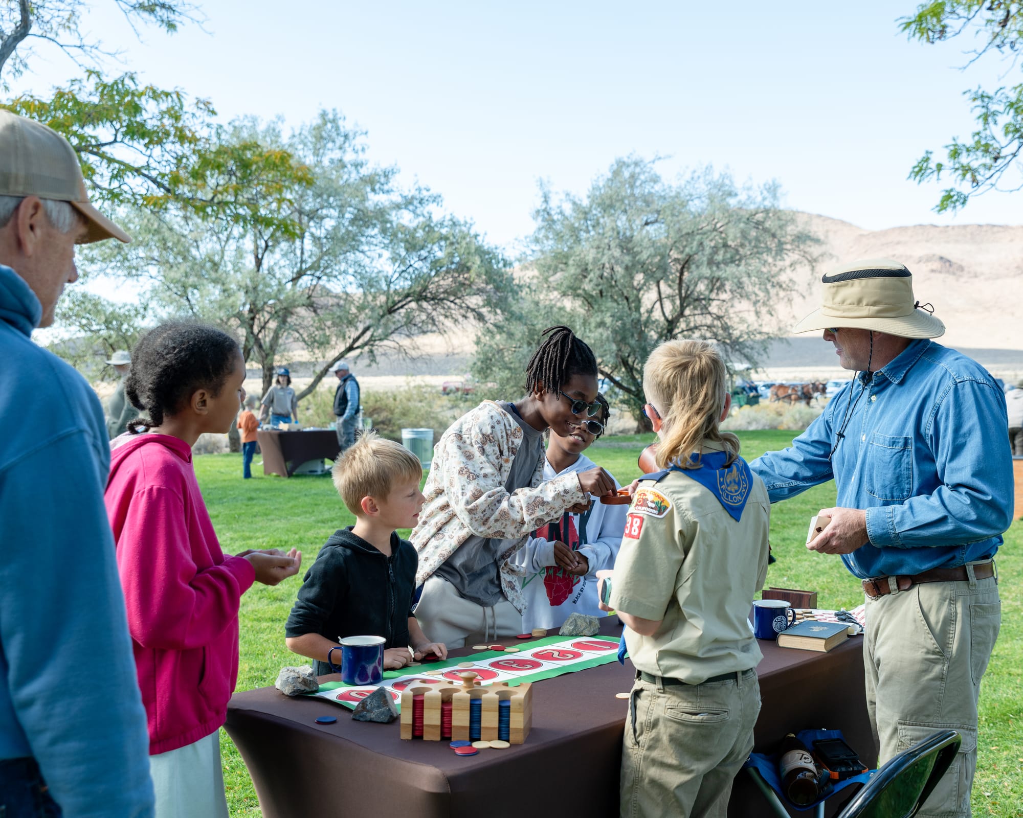 Visitors experienced the Nevada Civil War Volunteers encampment through hands-on activities and a visual experience of what life may have been like during that time in history. The National Pony Express Association, Nevada Division, brought out three ponies and did a live demonstration of mochila exchange with crowd participants chanting "rider-in" and "rider-out" as the riders completed the exchange. The Fort Churchill Chapter of the Daughters of the American Revolution had a laundry station set up, where many folks experienced firsthand the joy of washing clothes by hand. Wagon rides were available throughout the park to assist in moving from remote parking to the activities, and it was shared that this was the first time since the late 1800s that mule-drawn wagons had traveled through the camp.