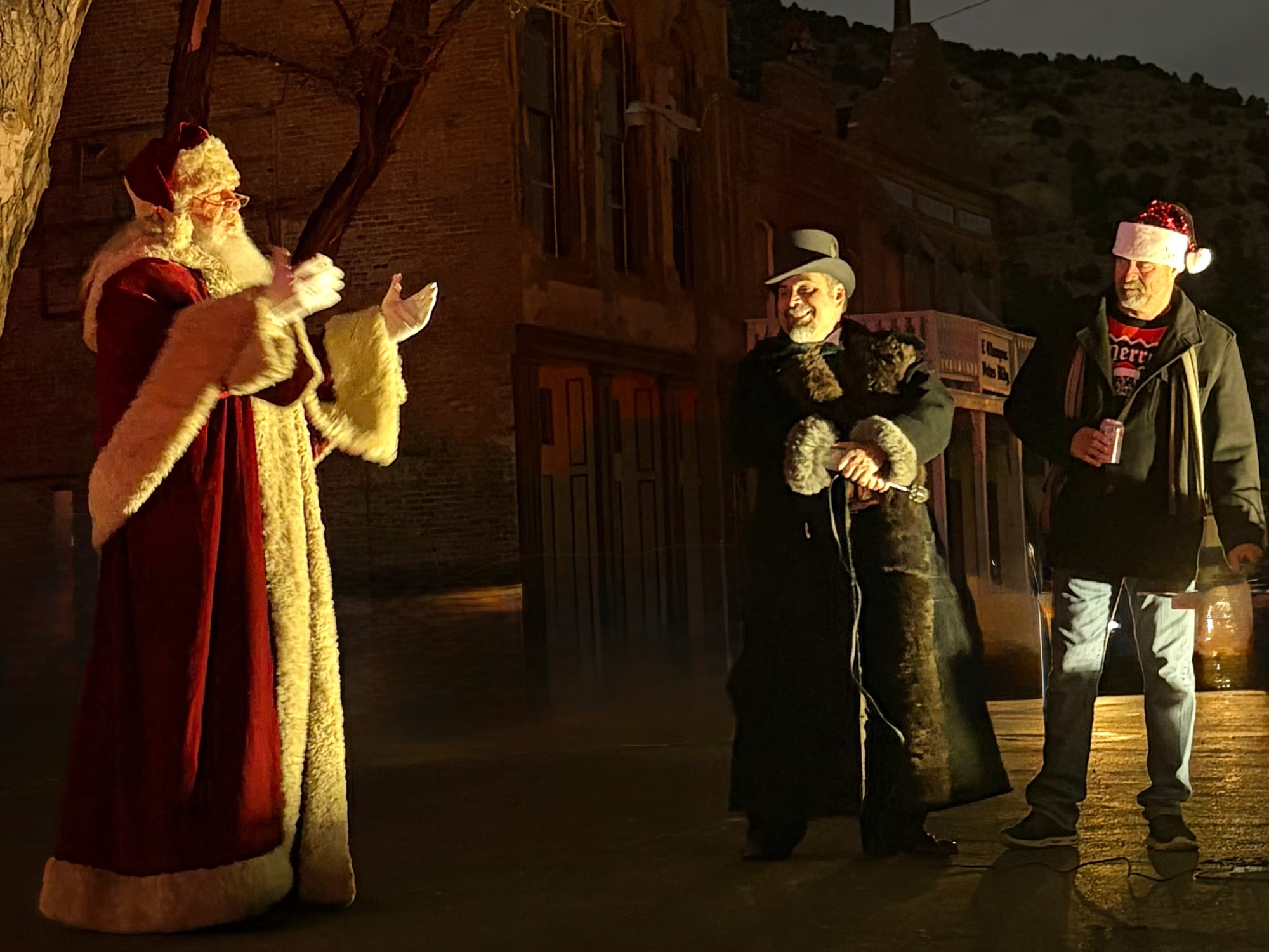 Storey County Sheriff's delivered Santa to an audience of holiday hopefuls waiting for the lights to come on in Virginia City, Dec. 5.