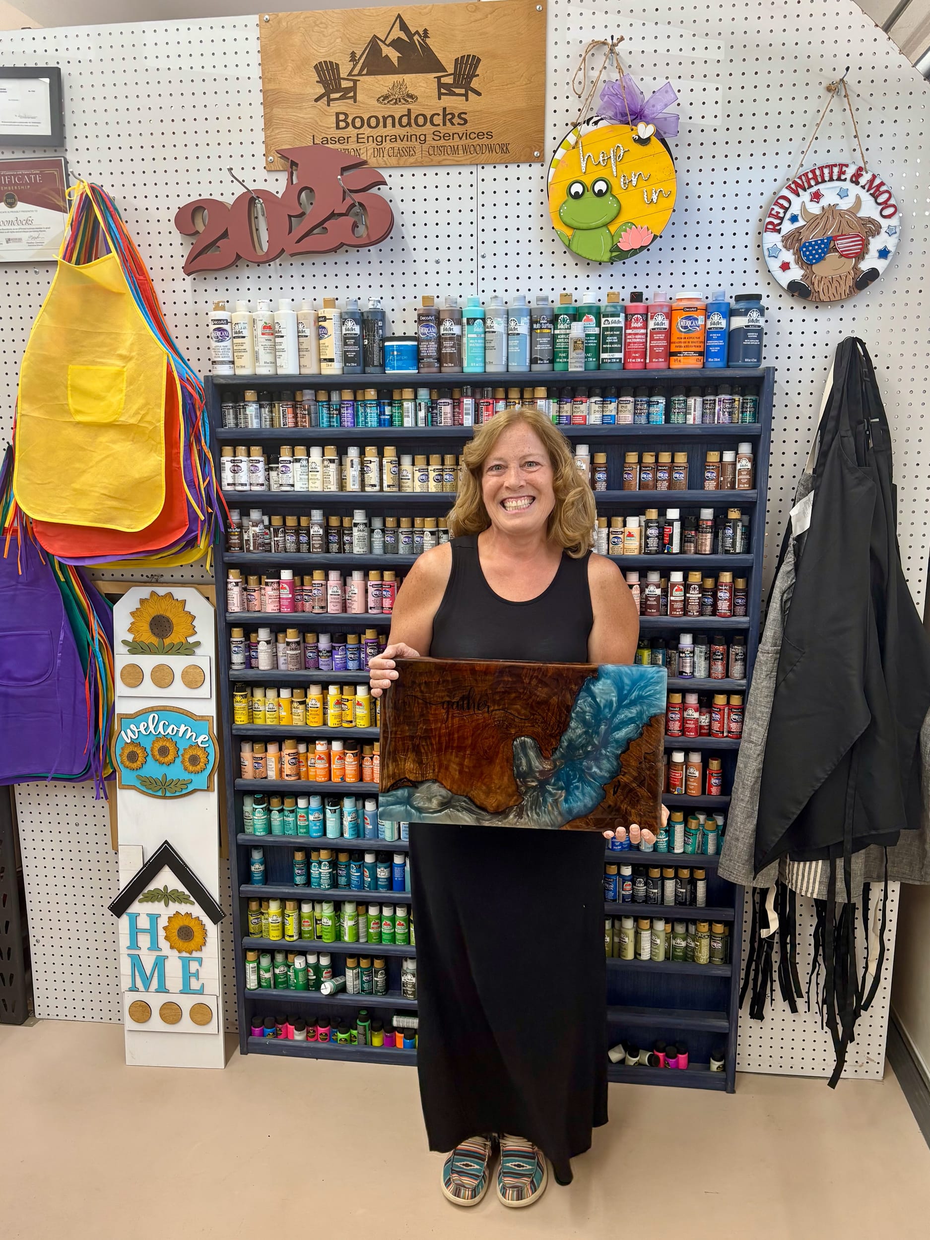 When most people think about retirement, they imagine slowing down. But for Dayton local Stacie Paterson, retirement became the launching pad for a colorful new chapter. What started as a creative curiosity with a tabletop Glowforge laser cutter and engraver in 2019 has blossomed into Boondocks, an artistic venture that offers the community an enjoyable, hands-on activity for all ages.