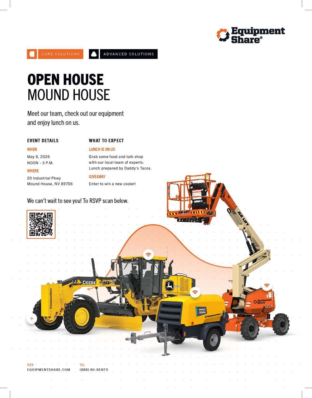 Help us welcome Equipment Share to the community. Ribbon cutting on Friday, May 8, 12 p.m. at 20 Industrial Parkway, Mound House.
