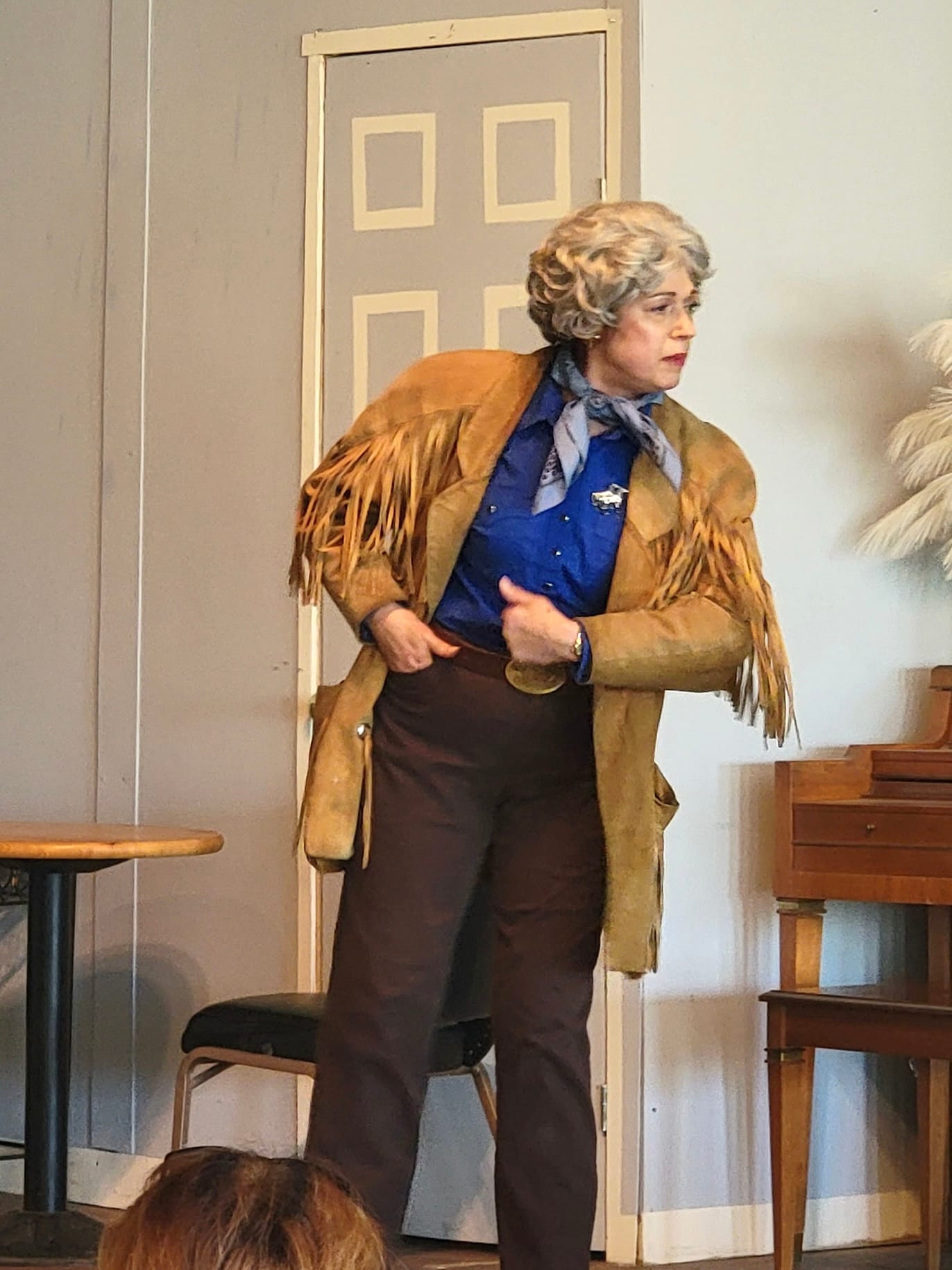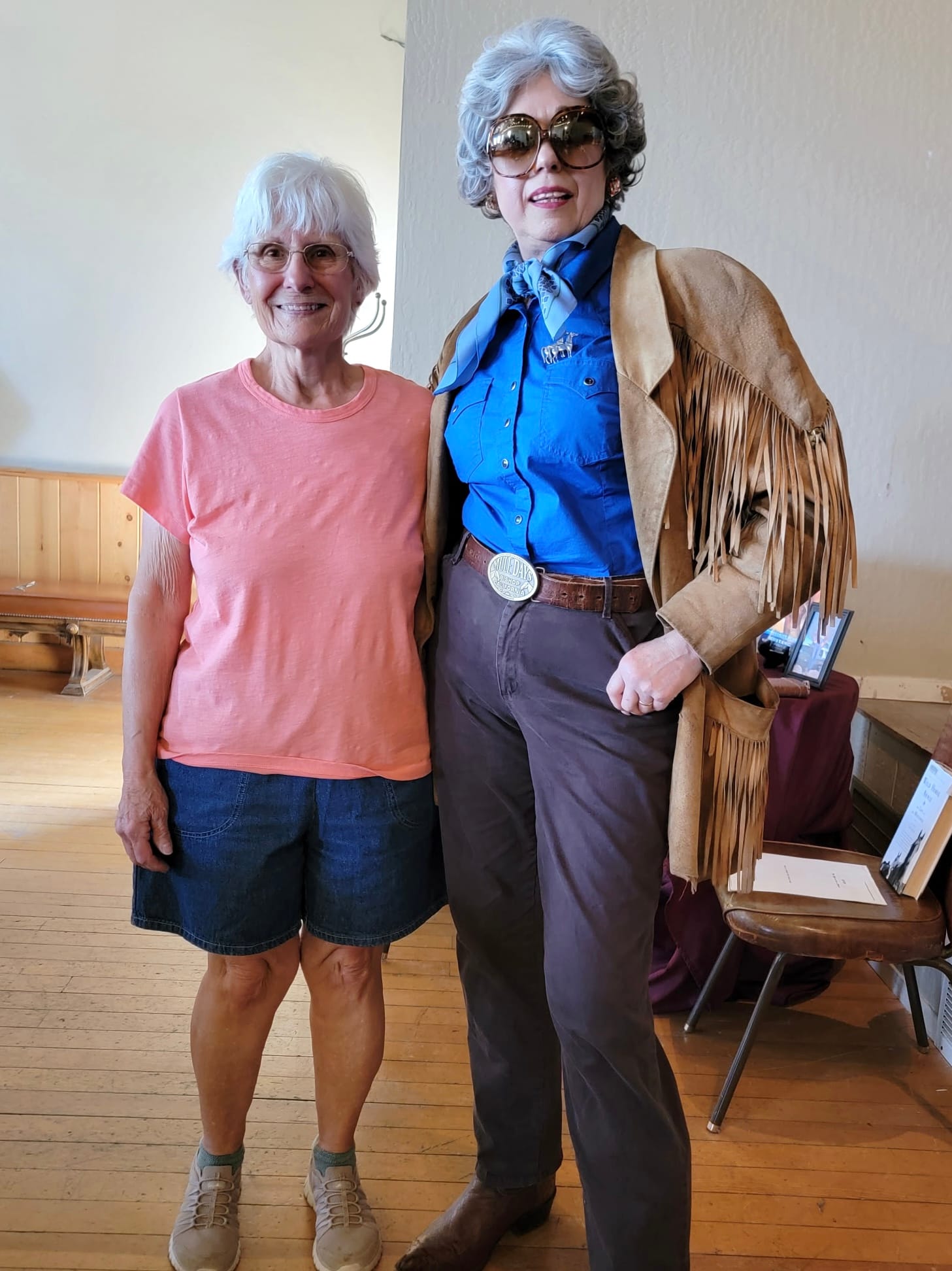 Held upstairs at the historic Odeon, the lecture drew an audience of 25, including Rae Hanna, President of the Wild Horse Preservation League (WHPL). From the moment Harris stepped onto the stage, she fully transformed into Wild Horse Annie, captivating everyone in the room. At times, it was easy to forget that Kim Harris was behind the portrayal, as she embodied Johnston’s passion, strength, and determination with striking authenticity.