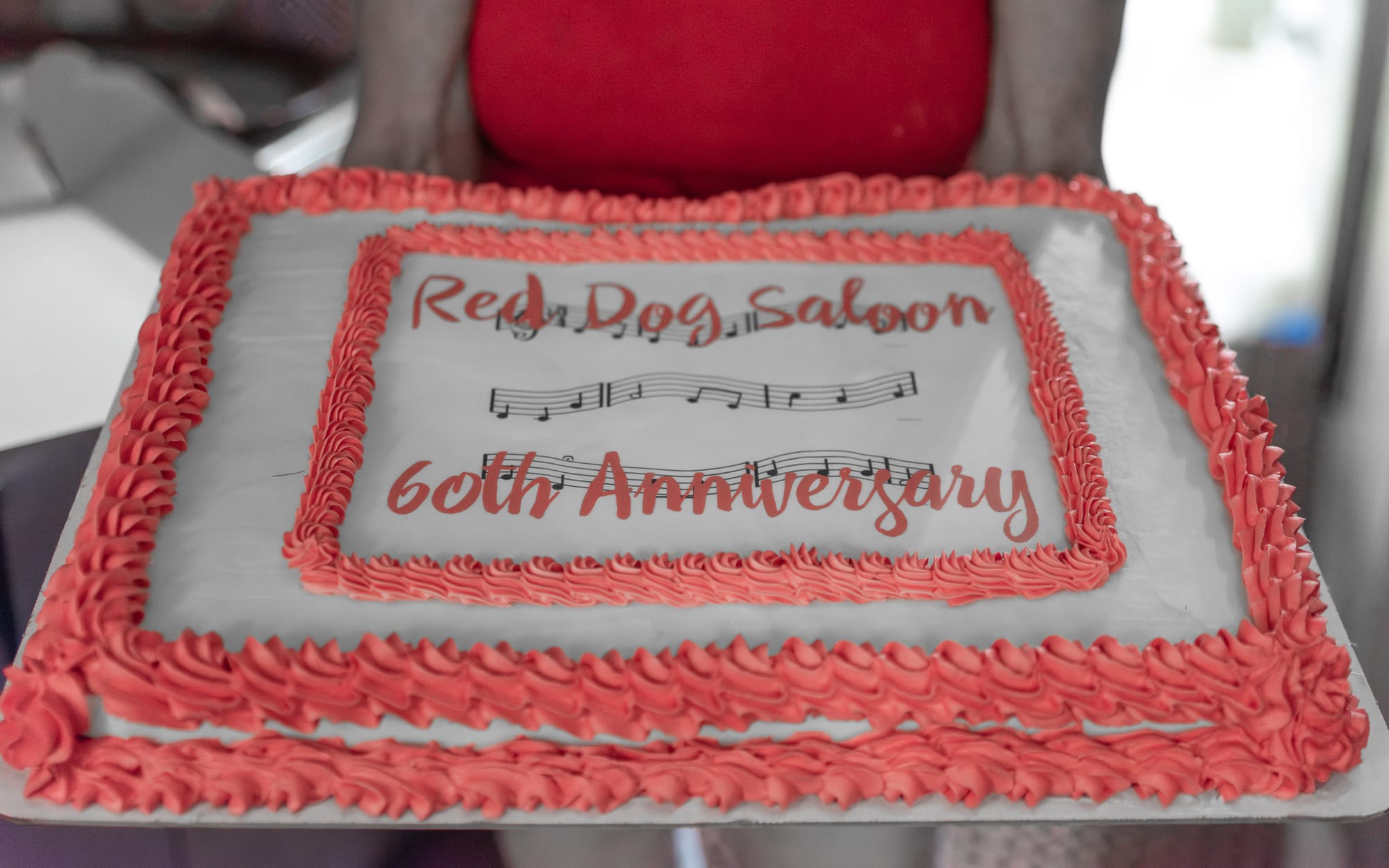 The Red Dog Saloon is celebrating its 60th anniversary all summer long. On Saturday, Matt Axton—yes, the son of Hoyt Axton—took the stage with his band, featuring his mom on keyboards. Matt, with over 300 original songs, is carving out a bold path in Americana music, blending elements of rock and roll. The crowd was on their feet, dancing all night and singing along to familiar hits. Sue and Loren, regulars most weekends, brought a cake to mark the occasion. Newlyweds Dylan and Kimberly stopped by to celebrate their first day as husband and wife, and the band invited them onstage for a photo.