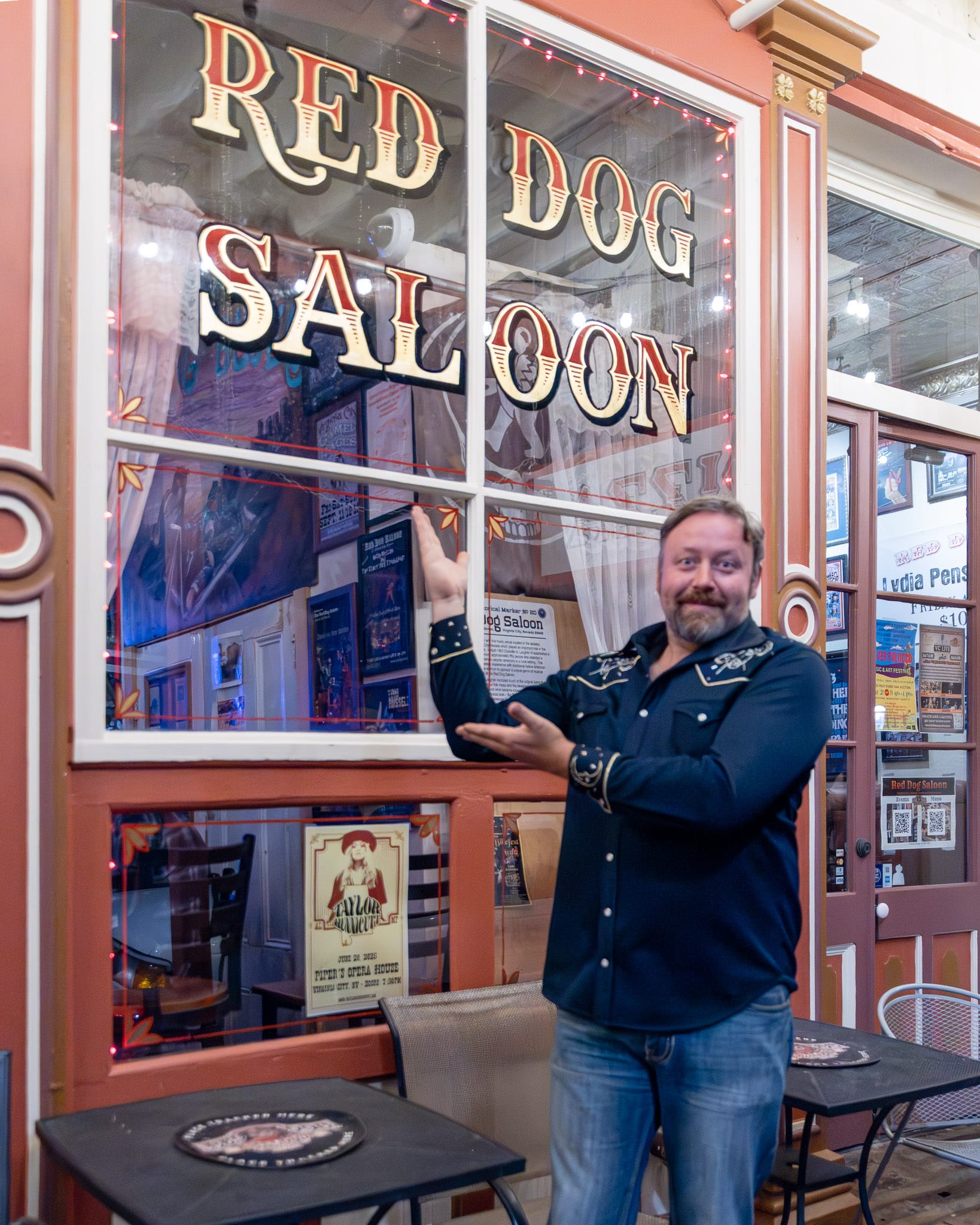If you’re unfamiliar with the Red Dog’s history, here’s a glimpse from their website. In the summer of 1965, Laughlin, better known as Travus T. Hipp, a disc jockey and news commentator, recruited talent that blended traditional folk music with psychedelic rock. He and his friends created “The Red Dog Experience,” featuring then-unknown acts like Big Brother and the Holding Company, The Charlatans, and The Wildflower, who played in the refurbished saloon from 1965 to 1966. There was no clear line between performers and audience during this era, as music, psychedelic experimentation, and Bill Ham’s primitive light shows fused to form a new sense of community. Laughlin and George Hunter of The Charlatans, with their long hair, boots, and Native American-inspired clothing, were dubbed “proto-hippies.”