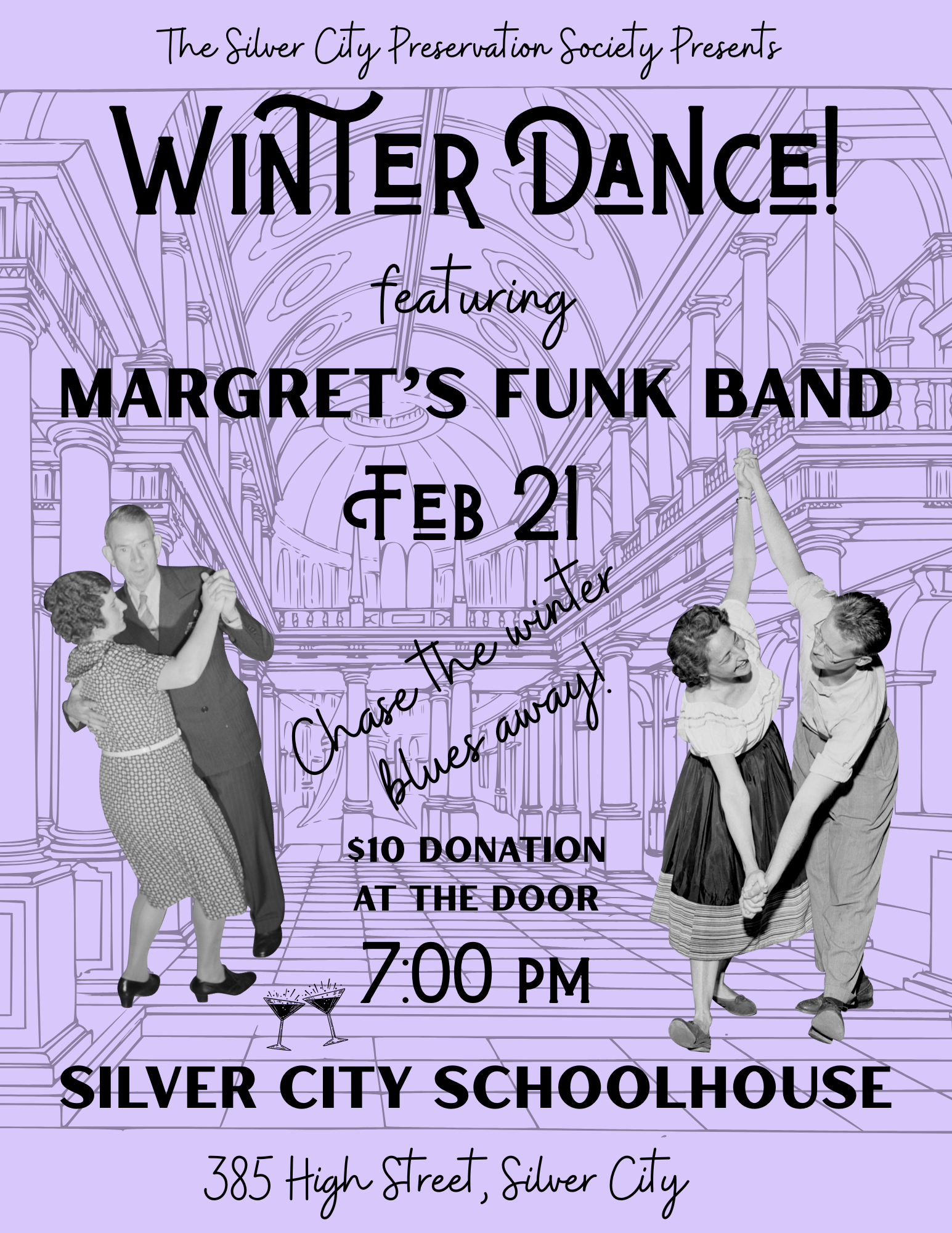 The Silver City Preservation Society (SCPS) invites everyone to the historic Silver City Schoolhouse for a Winter Dance on Feb. 20 at 7 p.m. Tasked in part with producing and presenting arts and culture activities and events for Silver City and surrounding communities, SCPS is delighted to offer an event to help folks shake off the winter blues, listen to live music, dance and enjoy some old fashioned in-person socializing!