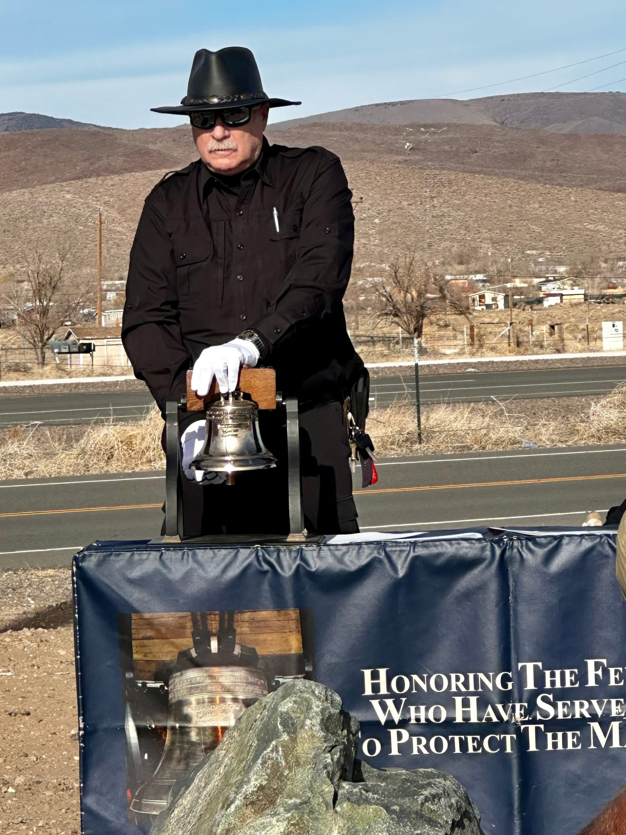 The rededication ceremony was truly unforgettable, especially having local resident and WWII veteran Ben Hagans in attendance. The Reno Elks Treble Makers Choir opened with a selection of patriotic songs, including the national anthem. The Carson High School NJROTC Color Guard posted the colors. Pastor Dennis Hubbard provided the invocation and benediction, while Lyon County Commissioner Tammy Hendrix offered the welcome address and rededication declaration. Jonathan Burnett rang a 70-pound miniature Liberty Bell for the Honor Bell ceremony (seven tolls), followed by a three-volley salute from Yerington VFW Post 8084 and Taps performed by the Veterans Coalition bugler.