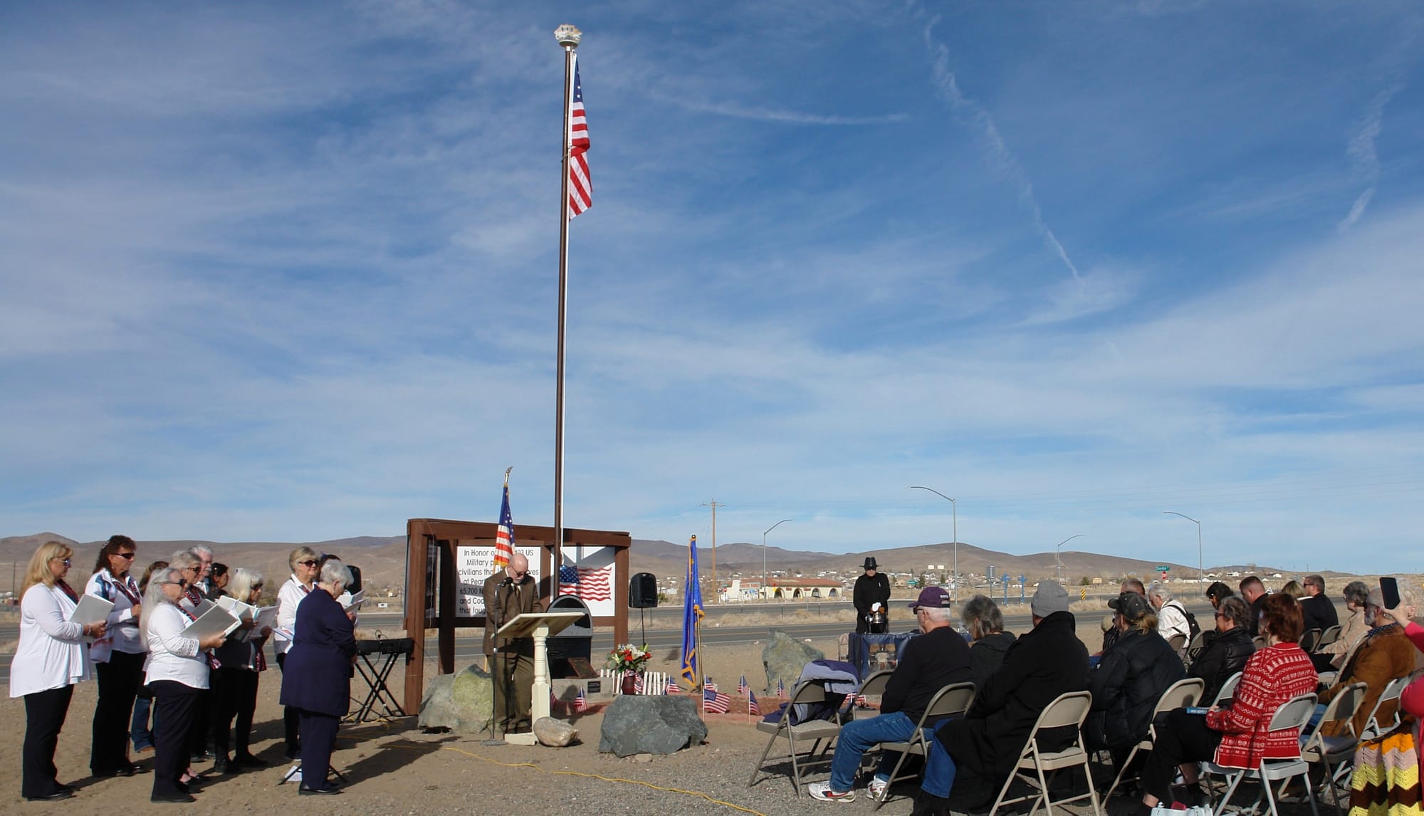 On Sunday, Dec. 7, proud Americans gathered at the Stagecoach Community Center (8204 Hwy 50) to rededicate a WWII memorial in honor of Pearl Harbor Remembrance Day.