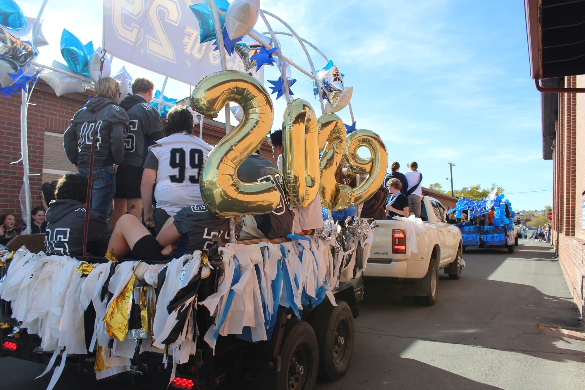VCHS Homecoming Parade floats (including the teachers!). Homecoming King and Queen, Silas Greene and Katelynn Lutz - photo by Amanda Seaton.