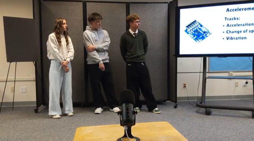 The project, developed by Luke Branson, Derek McCoy, and Haylee Walters, centered on a wearable watch band paired with an app designed to monitor fatigue in athletes.